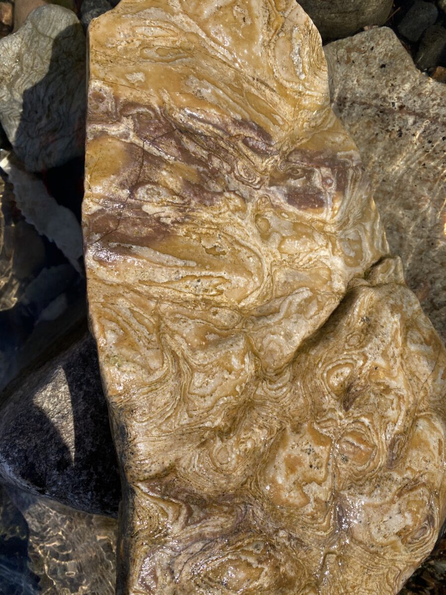 The story that these rocks hold, dates back between 500 million to 3 billion years ago when blue-green algae thrived across the earth’s landscape. These striations and dimpled rock patterns we see now, are the impressive fossils of these algae.