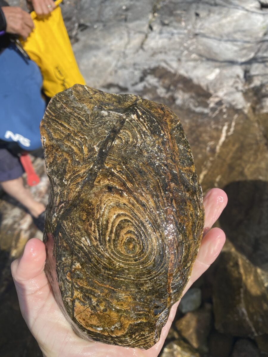 Perhaps the most fascinating rock formations, and the reason you are likely reading this, are the stromatolites. These striated and dimpled patterns found above and below the water line create a dramatic texture to the shoreline and under the hull of boats passing by. They come in variations from hand-held texturized rocks to large circular patterns spanning areas larger than a car, to symmetrically dimpled rocks that look almost human-made.