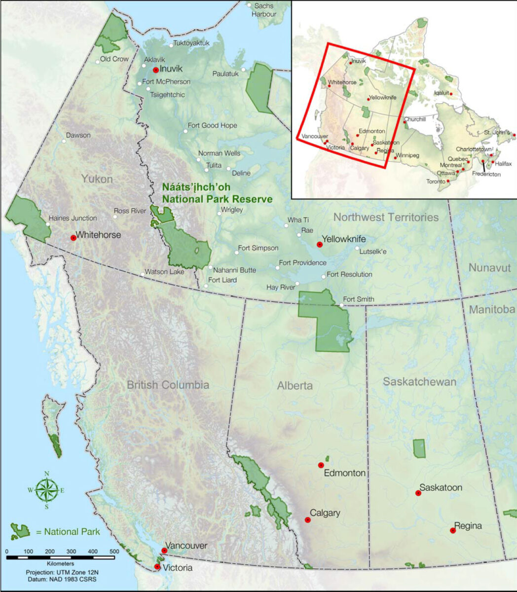 Both parks operate under co-management agreements: Nahanni Park Reserve is co-managed by the Dehcho First Nations, Nahʔą Dehé Dene Band and Parks Canada, while Nááts’įhch’oh National Park Reserve is co-managed by the Sahtu Dene and Métis and Parks Canada.